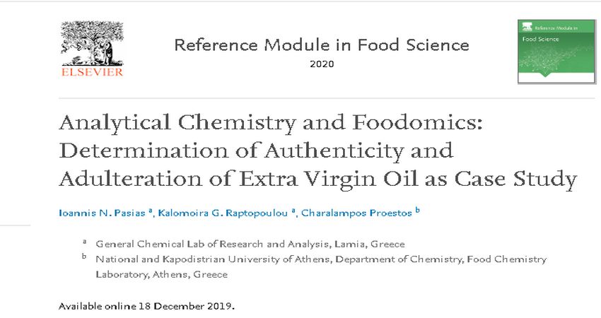 Το 2019 μας αφήνει και το χημείο μας με περηφάνια σας ανακοινώνει πως δημοσιεύτηκε το άρθρο μας για την αυθεντικότητα και τη νοθεία του ελαιολάδου. Ευχαριστούμε για μία ακόμα φορά όλους όσους μας έχουν βοηθήσει σε αυτή την προσπάθεια ξεκινώντας από τους μικρούς παραγωγούς και καταλήγοντας έως τον κ. Προεστό αναπληρωτή καθηγητή Χημείας τροφίμων του Πανεπιστημίου Αθηνών.