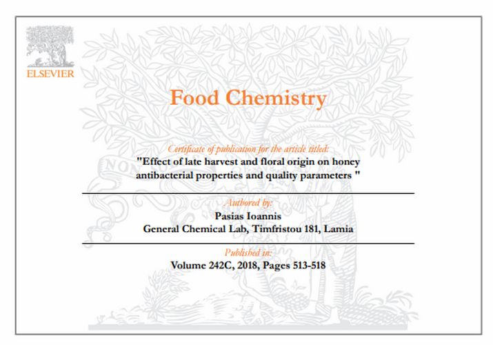 Food Chemistry (Volume 242C, 2018, σελίδες 513-518), ανέδειξε τα ποιοτικά χαρακτηριστικά του ελληνικού μελιού του κ. Τάσου Καϊτατζή, που παράγεται στην περιοχή της Αττικής.